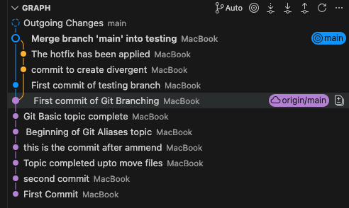 * 5df03d0 (HEAD -> testing, origin/main, main) First commit of Git Branching