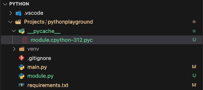 If you create module, lets say module.py and import it to main.py, a new subfolder appears - __pycache__. It has a file called module.cpython-xy.pyc where x and y are digits derived from python version. The last part .pyc comes from the word Python and Compiled. It is a byte code ready to be executed by interpreter.